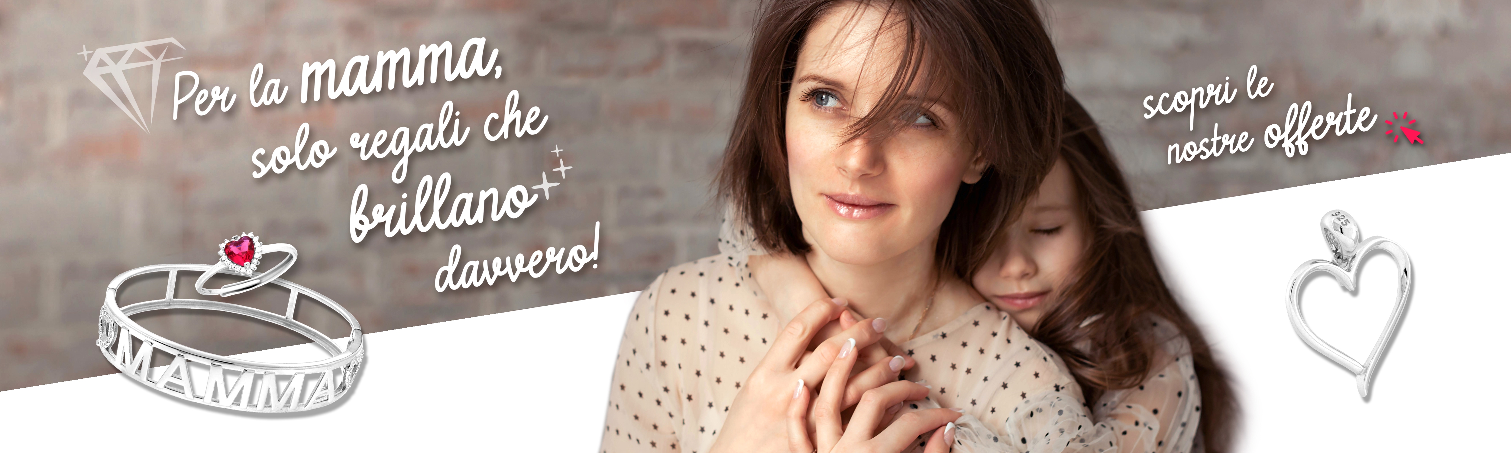 Ciondolo a forma di doppio cuore con cubic zirconia colore bianco incastonati e con finitura lucida.