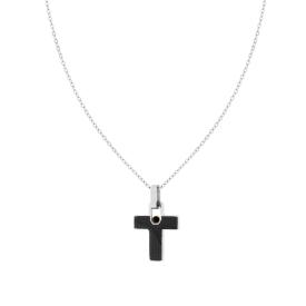 Collana con catena forzatina e accessorio pendente a forma di croce colore laccato nero, con finitura liscia e lucida e satinata.
