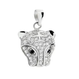 Ciondolo a forma di Gatto con finitura lucida e zirconi bianchi incastonati.
