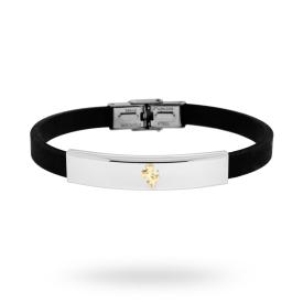 Bracciale con Doppio filo in PVC caucciù con accessorio a forma di Bussola funzionante liscia e lucida, con lavorazione laser.