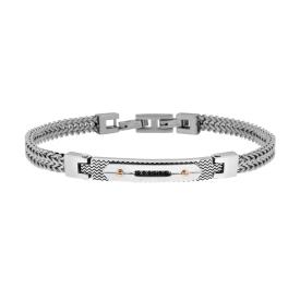 Bracciale imperniato con Catena colore Acciaio e Nero con Accessorio Targa colore Nero.