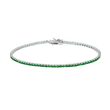 Bracciale Tennis con zirconi Verde Smeraldo e bianchi incastonati alternati, su montatura 4 Griffe.