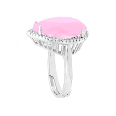 Anello a forma di Goccia con pietra Opalina sfaccettata contornata da Zirconi Bianchi.