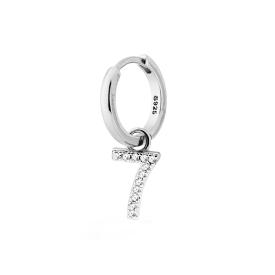 Orecchino Cerchio con chiusura a scatto, con accessorio pendente Numero Nove con zirconi Bianchi incastonati.