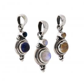 Ciondolo Etnico con Accessorio di forma Tonda con Pietre Granato, Ametista, Opale, Quarzo Rutilato, Tanzanite, Turchese, Onice. ...