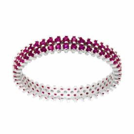 Anello Eternity, Veretta a giro, con Zirconi colore Rosso Rubino, taglio Baguette incastonati a Binario.