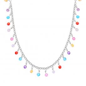 Collana con catena forzatina diamantata con accessori pendenti tondi con cubic zirconia multicolor incastonati.