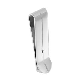 Fermasoldi con Piastra avvitata con lavorazione liscia e lucida. Incisione laser a righe.