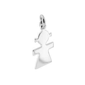 Ciondolo a forma di bimbo con finitura liscia e lucida.