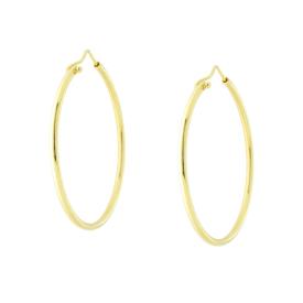 Orecchini a forma di Cerchio con lavorazione Liscia e Lucida in Galvanica Oro, con Chiusura scomparsa con gancio.
