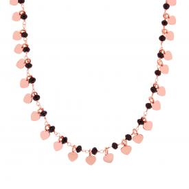 Collana con due fili catena Forzatina diamantata con accessori pendenti a forma di cuore con finitura liscia e crystal colore ross...