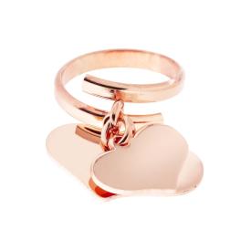 Anello aperto con accessori a forma di cuore con applicazione smalto rosa.