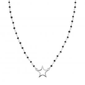 Collana con catena forzatina con palline sfaccetate con accessori pendenti a forma di stella, piatta liscia e lucida.