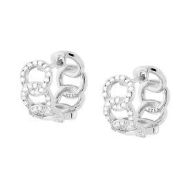 Orecchini semicerchio a forma di catena grumetta con zirconi bianchi incastonati.