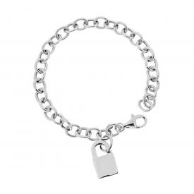 Bracciale con catena rolò diamantata con anelli e accessori pendenti a forma di cuore con finitura liscia e lucida.