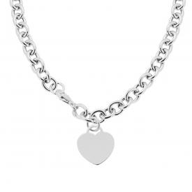 Collana con catena forzatina diamantata e accessorio a forma di cuore con finitura lucida e cubic zirconia bianco incastonato.