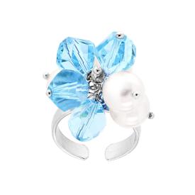 Anello con fiore composto da cubic zirconia Verde Smeraldo, finitura pallinata e lucida.