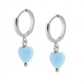 Orecchini a cerchio per bimba con accessorio a forma di cuore con smalto rosso e bianco applicato.