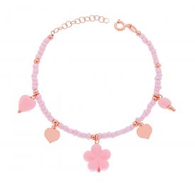 Bracciale con perline colore rosa con finitura liscia e forma irregolare.