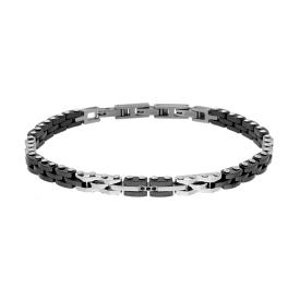 Bracciale uomo con catena bizantina con maglia nero e acciaio, con finitura liscia e lucida.