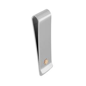 Fermasoldi con Piastra avvitata con lavorazione liscia e lucida. Incisione laser a righe.