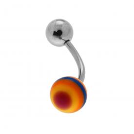Body Piercing Banana con pallina lucida e con semisfera a righe Multicolor con finitura liscia e lucida.