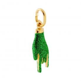 Ciondolo a forma di mano a corna con applicazione smalto colore Turchese glitterato e brillante.