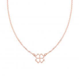 Collana con catena rolò diamantata con accessorio in linea a forma di Quadrifoglio, con finitura piatta, liscia e lucida.