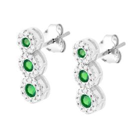 Orecchini di forma ovale con zircone Verde Smeraldo montato su 4 Griffe, contornato da zirconi bianchi.