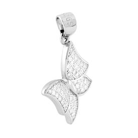 Ciondolo a forma di farfalla con finitura lucida e con cubic zirconia bianchi incastonati.
