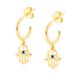 Orecchini cerchio con cubic zirconia bianchi incastonati e accessorio a forma di stella con smalto colore Azzurro applicato.