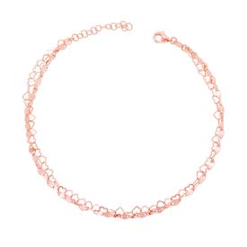 Cavigliera con catena maglia imperniata con elementi a forma di cuore, con finitura liscia e lucida.