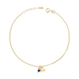 Cavigliera con Catena Grumetta Diamantata con accessori pendenti, stelle e perline colore blu, con finitura liscia e lucida.