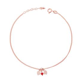 Cavigliera con Catena Grumetta Diamantata con accessori pendenti, farfalle, fiore e perline colore rosa, con finitura liscia e luc...
