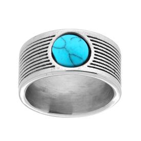 Anello fascia con spirali effetto corda e piastra ovale con decoro intrecciato e pietra ovale colore Turchese.