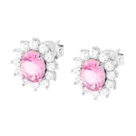 Orecchini Trilogy con Zirconi colore Rosa Contornati da Zirconi Bianchi.