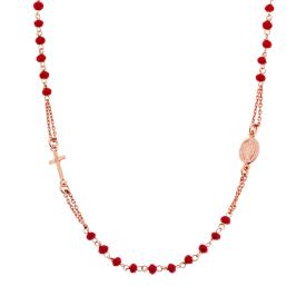 Collana Rosario con Crystal Rosso Chiaro e base Galvanica colore Rodio.