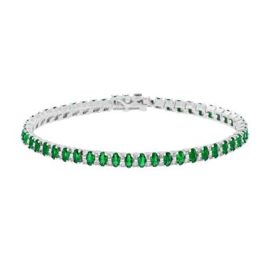 Bracciale tennis con con cubic zirconia ovali colore verde smeraldo alternati a bianchi montati su 4 Griffe.