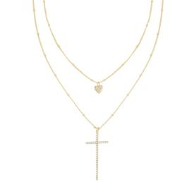 Collana con catena forzatina diamantata e accessori in linea a forma di cuore, perle bianche e cubic zirconia bianchi incastonati ...