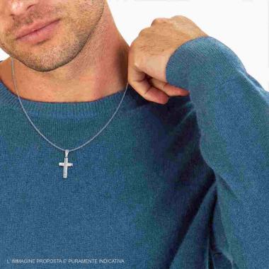 Collana con catena forzatina diamantata con accessorio pendente a forma di croce con Gesù Cristo in rilievo, finitura liscia e lu...