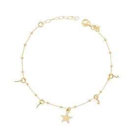 Bracciale con catena forzatina allungata, liscia e lucida, con accessori a forma di stella con smalto multicolor nei toni dell'azz...