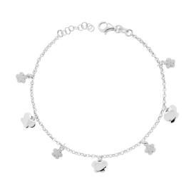 Bracciale con catena forzatina diamantata con accessori a forma di cuore, quadrifoglio e tondo, piatti e con finitura liscia e luc...