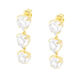 Orecchini a forma di fiori, con cubic zirconia bianchi incastonati al lobo e pendente plain con finitura lucida.