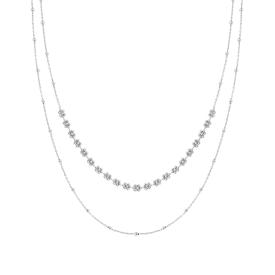 Collana con due fili catena forzatina diamantata con accessori pendenti a forma di cuore con cubic zirconia bianchi incastonati.