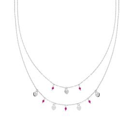 Collana con catena Rolò con accessori pendenti a forma di cuore con finiura liscia e lucida e con applicazione di smalto rosso.