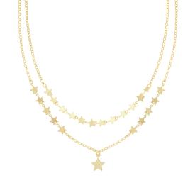 Collana con due fili, catena forzatina con bulloncini e stelle plain pendenti, e catena con crystal neri sfaccettati con stella pl...