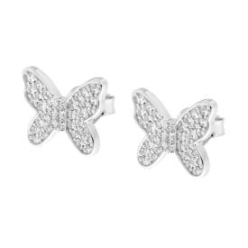 Orecchini a forma di farfalla con cubic zirconia colore bianco incastonati.