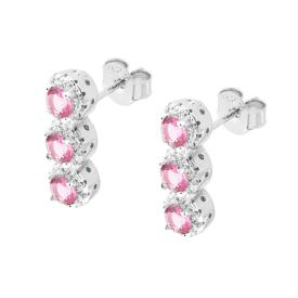 Orecchini trilogy Degradè con fiori con Cubic zirconia colore rosso rubino al centro e cubic zirconia bianchi incastonati intorno...