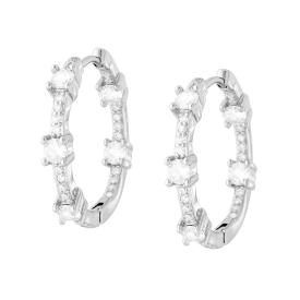 Orecchini cerchio con chiusura a scatto con finitura lucida e cubic zirconia colore bianchi incastonati.