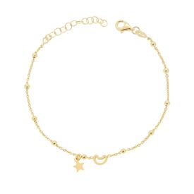 Bracciale con catena Forzatina diamantata con palline e accessori pendenti a forma di stella e lune con finitura liscia e lucida.<...